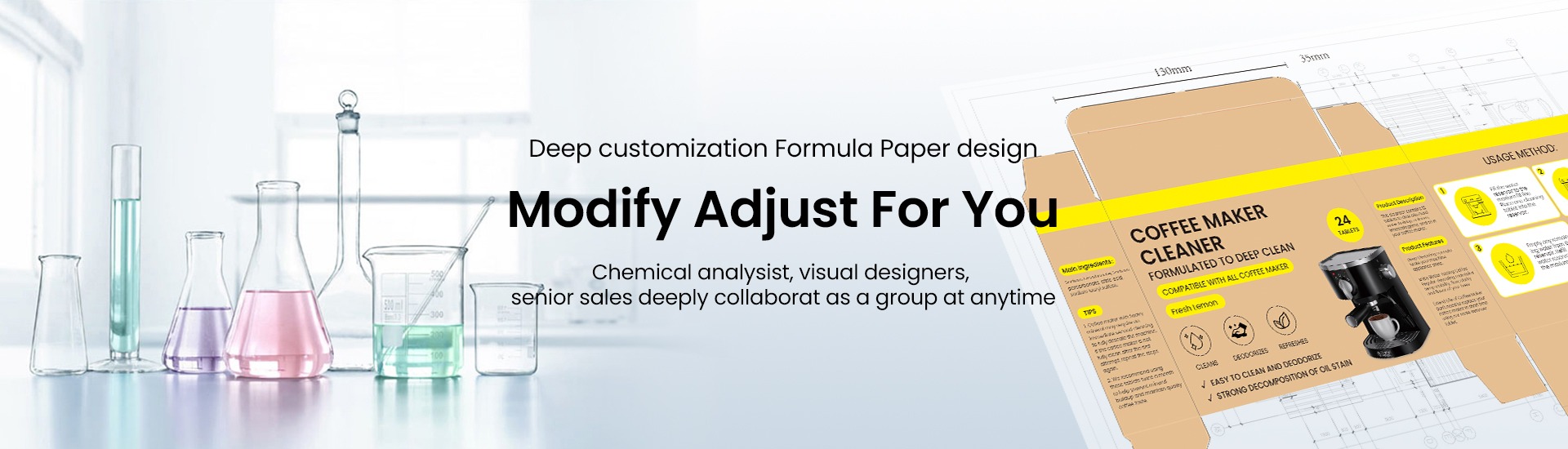 Produk utama: Tablet pembersih gigi, tablet pembersih mesin kopi, tablet sabun tangan, tablet pembersih multi fungsi, Pembersih panci pembuangan AC